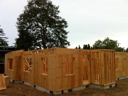 The site’s getting exciting! Framing has started on bldgs D and E, basements are dug out for bldgs A and B, and foundations are on their way. Lumber has arrived to frame the 1st 4 buildings. We’ve stockpiled lots of soil and hope to bring much of it to the future Thomas Cully Park up the street, which needs clean fill.